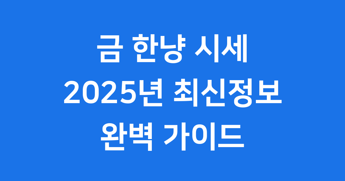 금 한냥 시세 2025년 사는법 투자전략