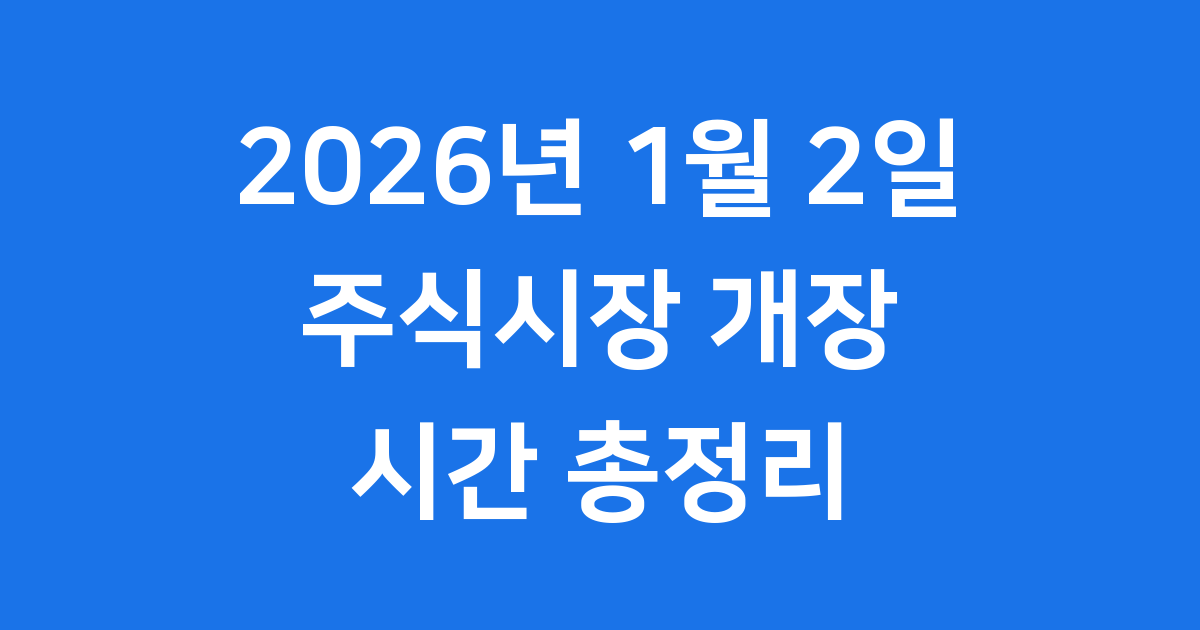 주식시장 개장 2026년 1월 2일 매매거래 시간 안내