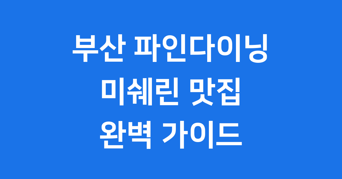 부산 파인다이닝 미쉐린 맛집 2026 추천